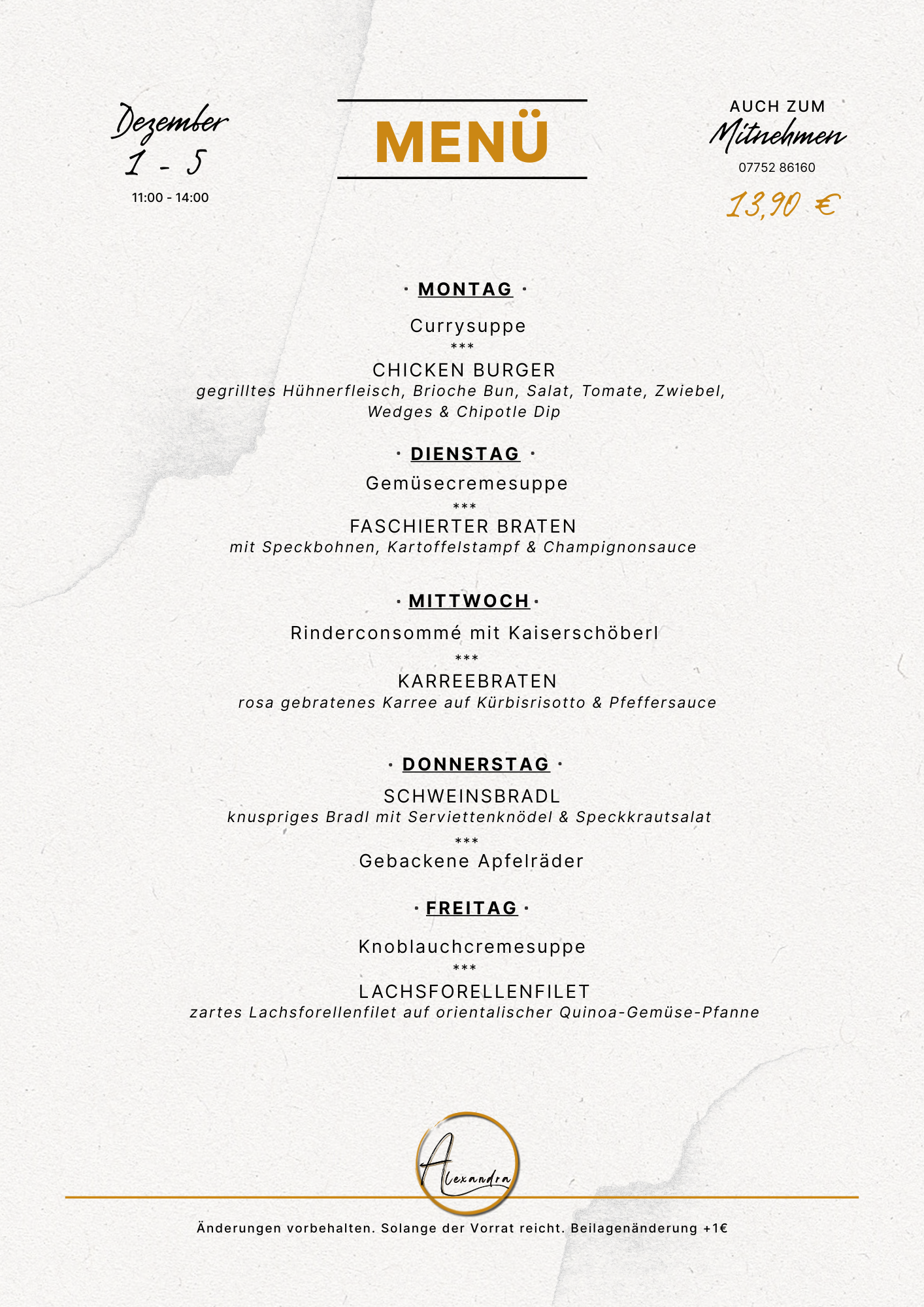 Mittagsmenü KW 49